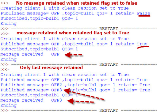 Questo pone un problema quando un nuovo sottoscritto ha bisogno di ottenere informazioni sullo stato prima di eseguire una funzione critica. I messaggi conservati rendono possibile, per i dispositivi che sono online e si iscrivono all’argomento, di ricevere immediatamente un messaggio che contiene l’ultimo valore buono conosciuto dell’argomento. Il messaggio ricevuto da un nuovo sottoscritto potrebbe non essere l’ultimo messaggio inviato su un argomento, ma sarà l’ultimo messaggio che ha il flag retained impostato dal publisher.