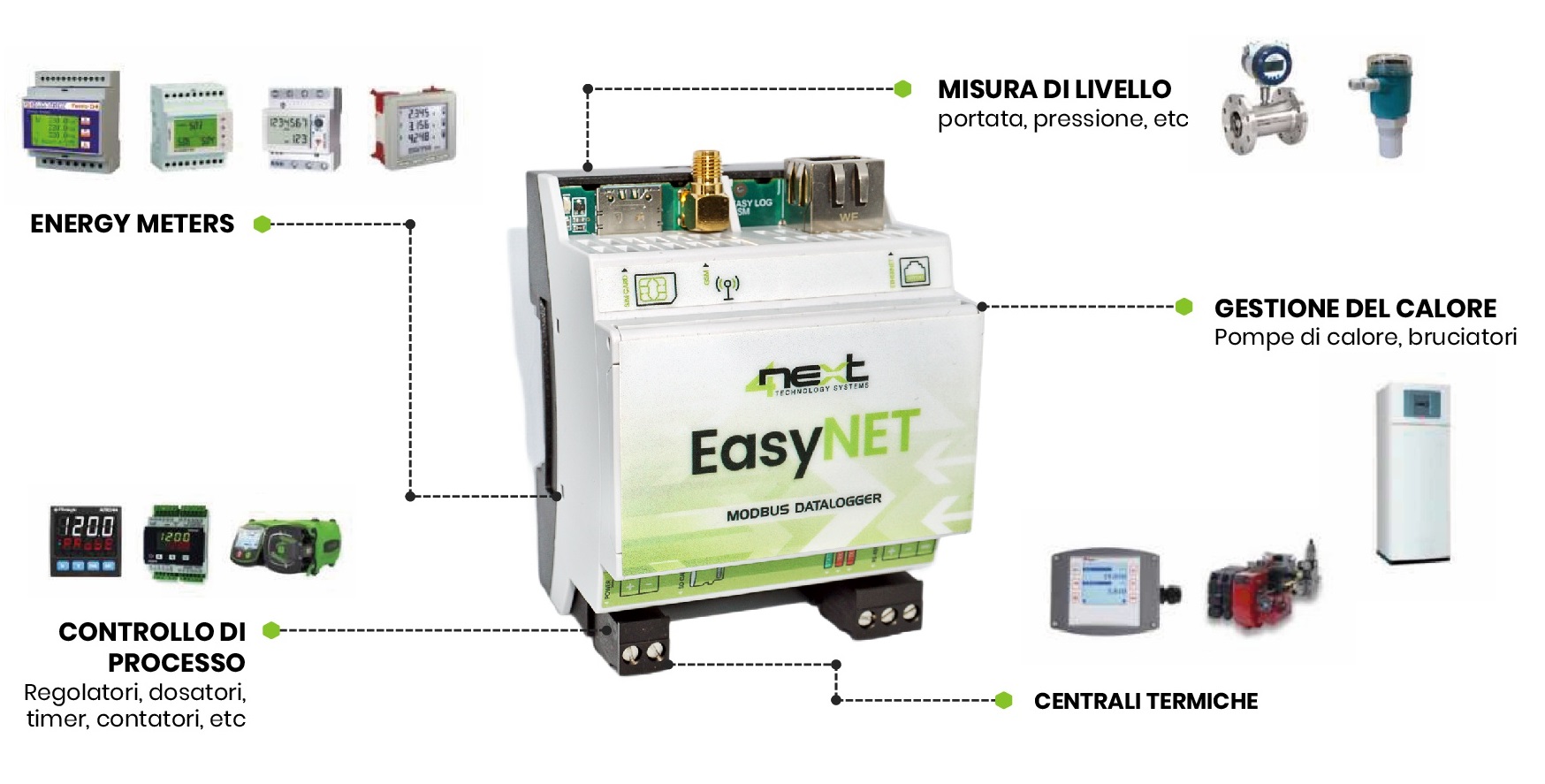 EasyNET è un data logger per dispositivi modbus RTU e TCP con integrato un modem 2G – 4G.